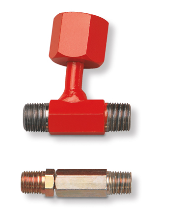 für doppeltwirkende Handpumpen Baureihe HPH, zum Einbau zwischen 4/2-Wegeventil und Handpumpe, Manometeranschluss G 1/4, Ölanschluss 2x3/8"-NPT außen, Teleskopnippel 2x1/4"-NPT außen